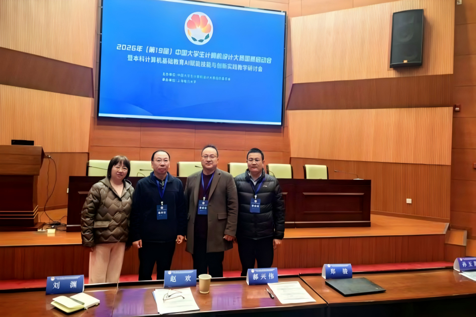 2月25日至27日,2026年(第19届)中国大学生计算机设计大赛国赛启动会暨本科计算机基础教育AI赋能技能与创新实践教学研讨会在上海电力大学举行。理学与信息科学学院党委副书记王宏儒带队赴沪参会。