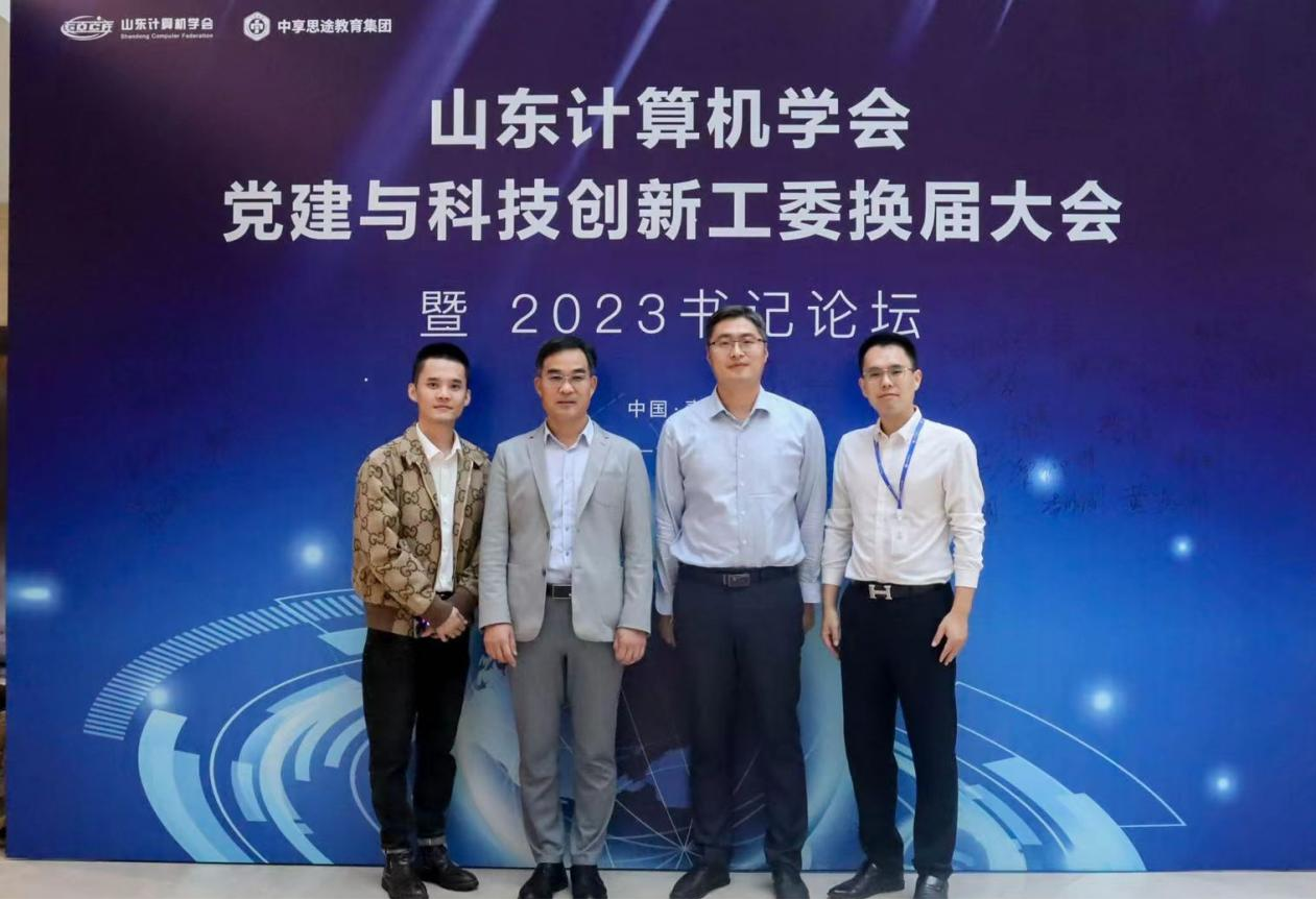 为深入学习领会习近平总书记关于党的建设的重要思想理论,引领学会党建及会员单位党建与科技创新工作再上新台阶,2023年10月13-15日,山东计算机学会党建与科技创新工委换届大会暨首届“2023 年山东计算机党建与科技创新优秀成果奖”颁奖仪式在青岛举行,理学与信息科学学院党委书记杨凯,党委副书记、副院长岳斌,团委书记姜程参加了此次会议并领奖。