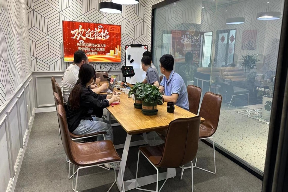 李吉忠一行随后前往崂山区青岛莱尼尔智能科技有限公司进行走访,青岛莱尼尔智能科技有限公司是一家青岛市高新技术企业,主要业务有综合数据平台、智能网关、物联网终端、实训设备等。学院一行与公司总经理孙锡亮进行了座谈交流。李吉忠介绍了理信学院的组织构成和2023年的毕业生的相关情况。双方期待进一步加强在实习生培养、学生实训方式创新、企业方的人才需求等方面的合作,实现共同发展。