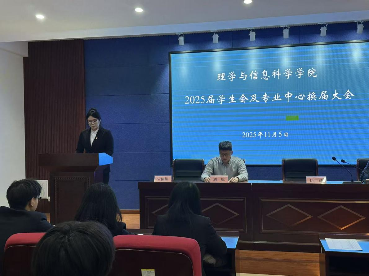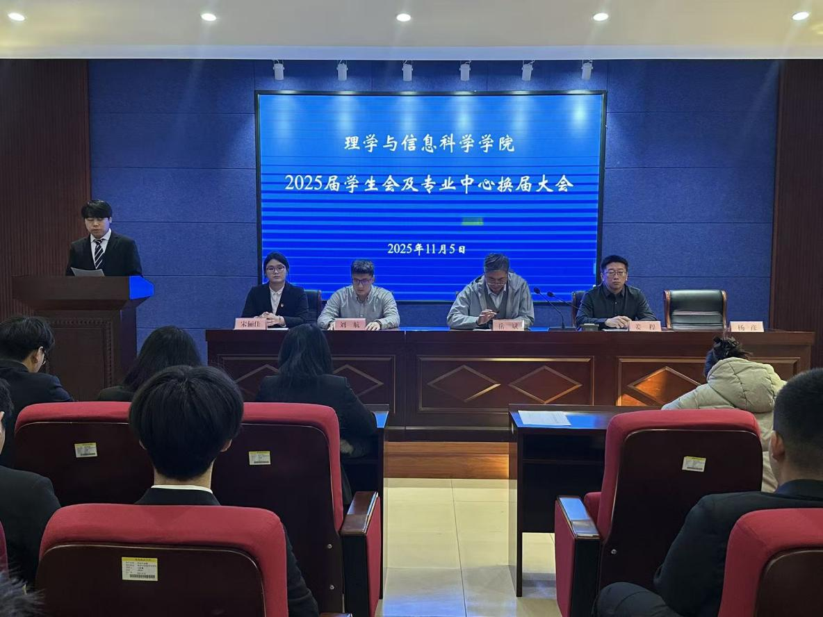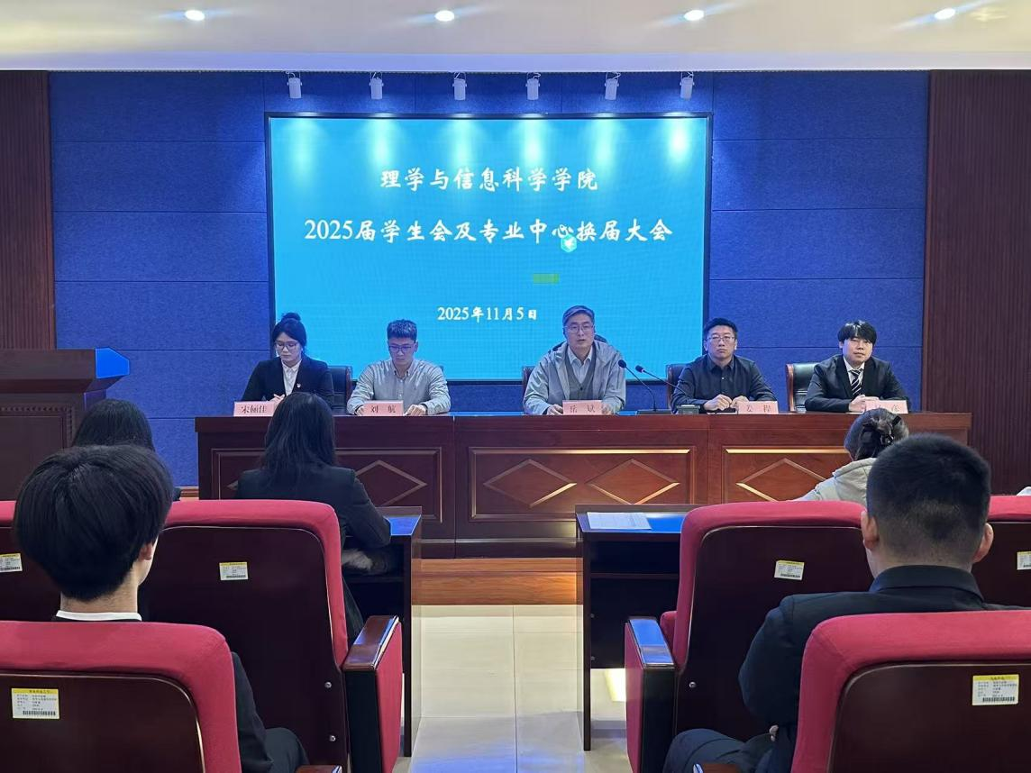 为持续推进学生组织规范化建设,强化学生骨干队伍建设。11月5日,理学与信息科学学院在信息楼315会议室举行2025届学生会及专业中心换届大会。学院党委副书记、副院长岳斌,团委书记姜程,全体辅导员,2024届学生会代表、全体2025届学生会及专业中心学生干部和2023级班级负责人参加,会议由姜程主持。
