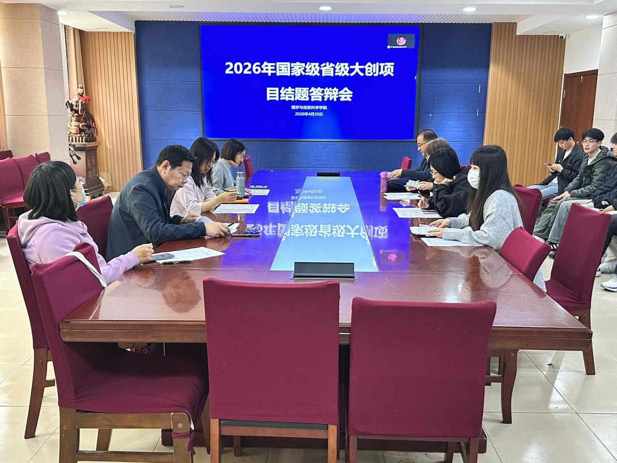 4月20日,理信学院于信息楼215会议室举办2026年省级、国家级大学生创新训练项目结题答辩会。学院特邀六位在大创项目指导与双创评审领域经验丰富的专家组成评审团,对学院27个省级、国家级创新训练项目开展评审。学院党委副书记王宏儒、辅导员徐蕾参加本次答辩会。