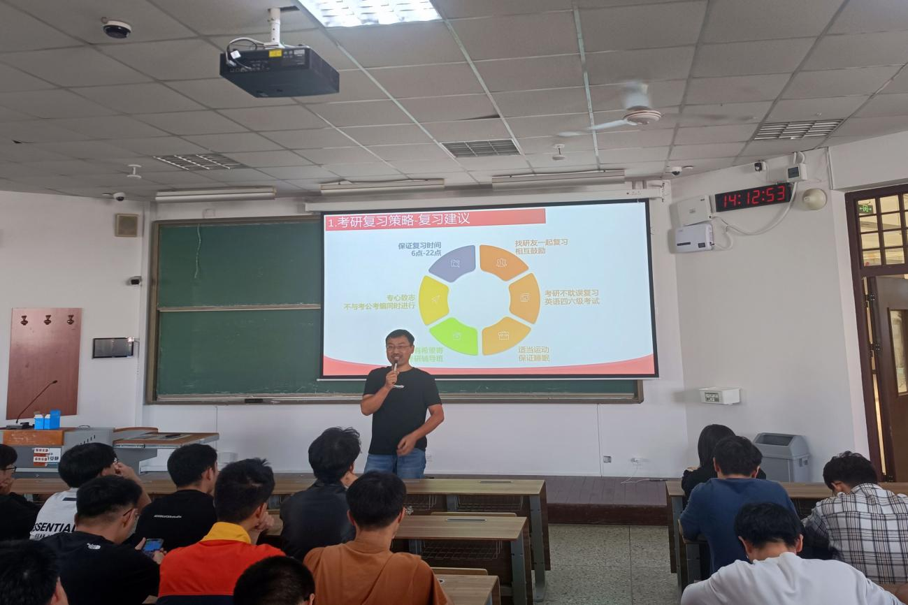 油海东对2024届毕业生考研与就业前景进行了深度解析。在考研方面,他以自身考研考博经历为基础,结合当前考研形势和学院考研的各项数据,给考研同学的复习计划提出相关建议,同时对考研容易出现的问题进行提醒并给出解决办法;在求职就业方面,他以学院历年数据和企业招聘流程为支撑,指出了提高自身技术实力和了解公司现阶段招聘要求的必要性;油海东还强调无论同学们向何方向发展,长久的坚持和多手准备是必不可少的。