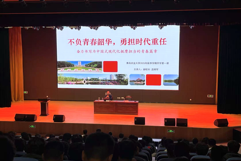 为更好地帮助新生融入校园生活,规划未来成长路径。10月15日,青岛农业大学副校长孟晓军在平度校区大学生活动中心报告厅讲授秋季学期“开学第一课”,理信学院辅导员宋尧及2025级新生参加。