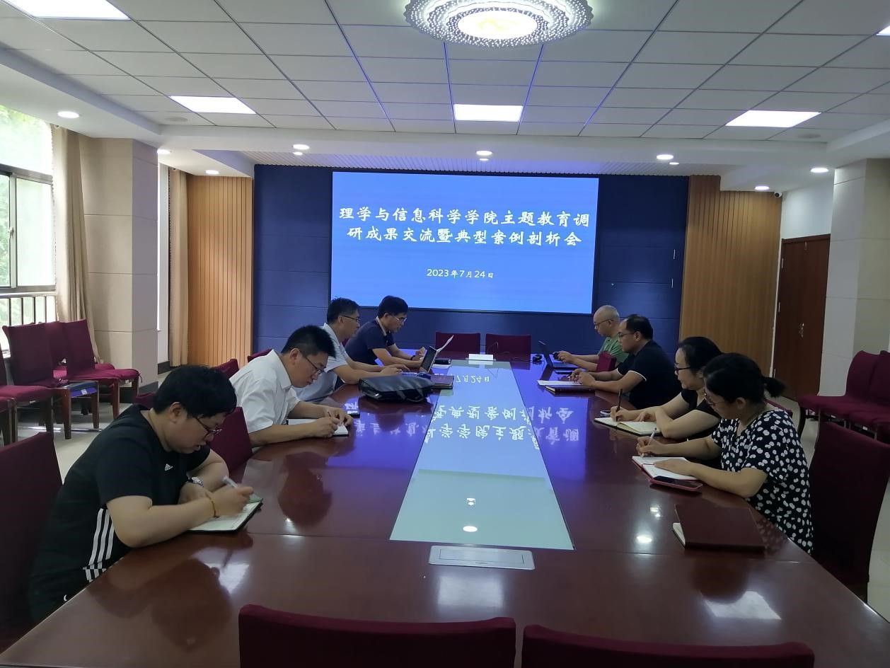 为深入推动学习贯彻习近平新时代中国特色社会主义思想主题教育走深走实,根据主题教育工作安排,7月24日上午,理学与信息科学学院党委在信息楼215会议室召开主题教育调研成果交流暨典型案例剖析会。会上,领导班子成员交流调研成果,并围绕自身工作实际就正反典型案例进行剖析,深化学习研讨,检视差距不足,研究提出改进措施。