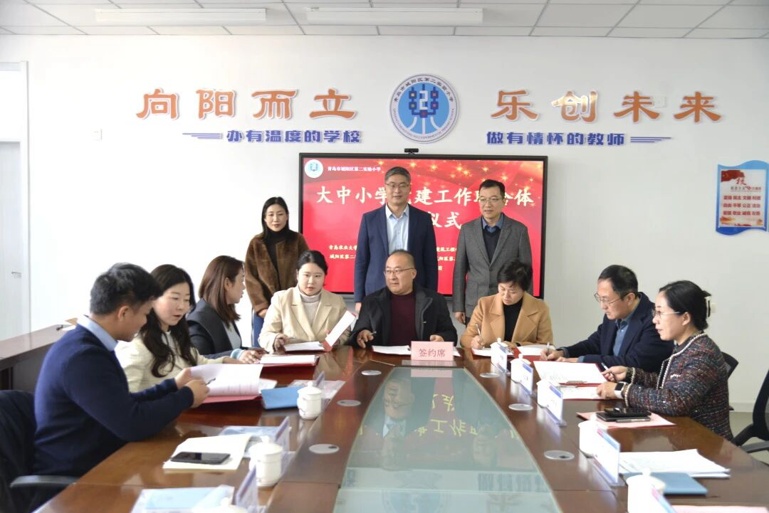 为凝聚育人合力,促进大中小学教育资源有机衔接,共同探索“党建引领、协同育人”的新模式与新路径,12月30日,大中小学党建联合体共建签约仪式在城阳区第二实验小学明阳路校区顺利举行。青岛农业大学理学与信息科学学院党委书记岳斌、党委副书记王宏儒、建筑工程学院党委副书记吕芹、园艺学院辅导员张钰扬,城阳区第二实验小学、城阳区实验中学、城阳区第二实验中学、城阳区国城小学、城阳区荟城小学等单位相关负责人共同出席。仪式由城阳区第二实验小学党总支副书记、校长纪玉丰主持。