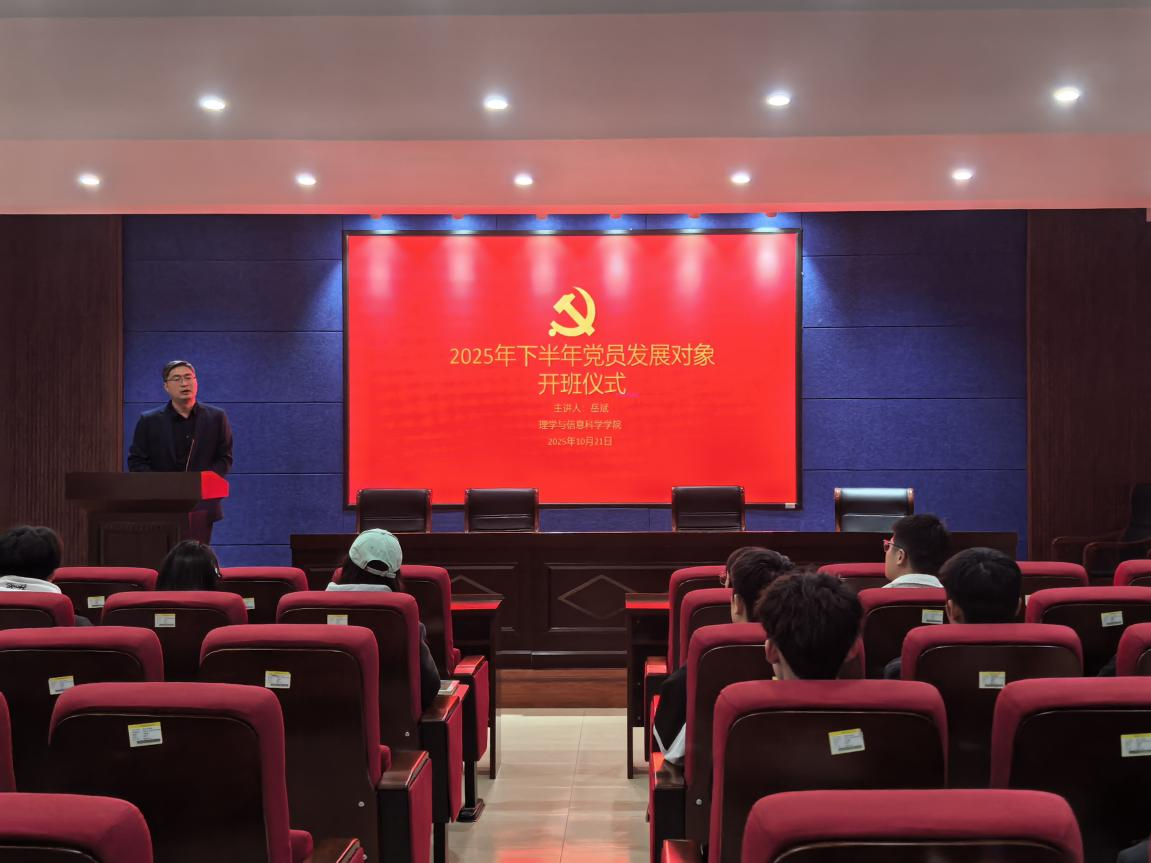 10月21日,理学与信息科学学院在城阳校区信息楼315会议室举行2025年下半年党员发展对象开班仪式。学院党委副书记、副院长岳斌,辅导员李温蓉及2025下半年党员发展对象参加仪式。