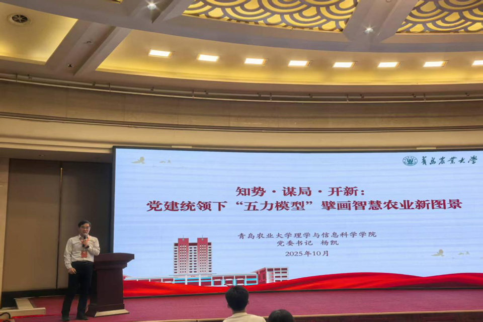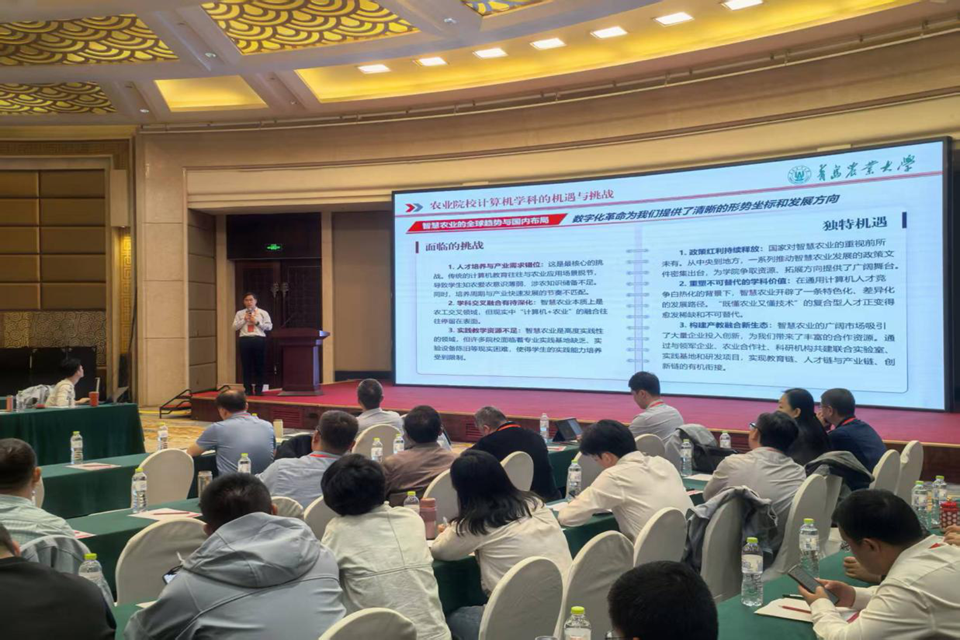 会议期间,杨凯发表题为《知势·谋局·开新:党建统领下“五力模型”擘画智慧农业新图景》的专题报告。首先,他指出在国家重视粮食安全与农业现代化的背景下,涉农高校计算机学科面临重大机遇,要坚持党的全面领导,将党的优势转化为科技创新动力。随后,重点阐述以党建为统领的“五力模型”,即通过政治引领力、制度保障力、榜样带动力、文化凝聚力和品牌影响力,为学院学科建设、人才培养等问题提供融合框架。最后,呼吁学界与产业界加强合作,将“五力模型”转化为实践成果,助力农业现代化。同时,杨凯还与来自全省各高校、科研院所及企业的代表就党建与业务深度融合、科技创新人才培养、产学研合作新模式等议题进行了深入的交流与研讨。