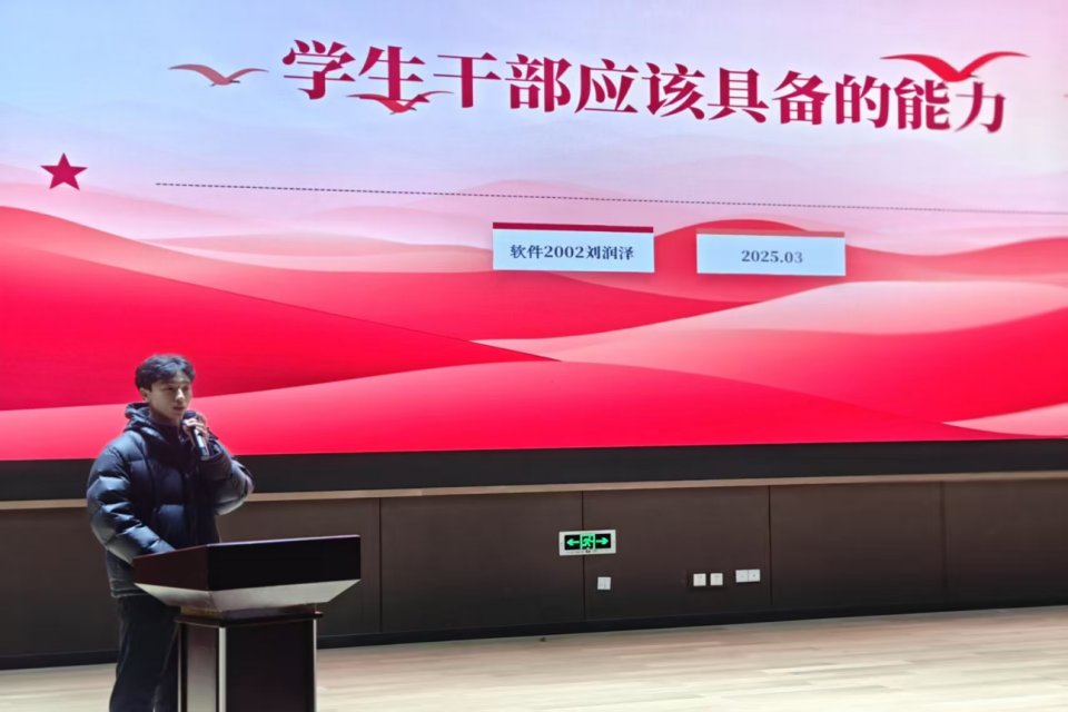 最后,姜程对学生干部队伍提出三点要求:一是抓舍风、促学风,学生干部要率先垂范,规范宿舍内务,维护课堂纪律,积极参与学院活动,展现学院精神风貌;二是强化领导力、协作力与创新能力,具备大局观,深化团队协作,凝聚力量解决问题;三是塑造正面形象,强化个人魅力,保持谦逊守信,成为同学们的榜样与引领者,激励共同成长。
