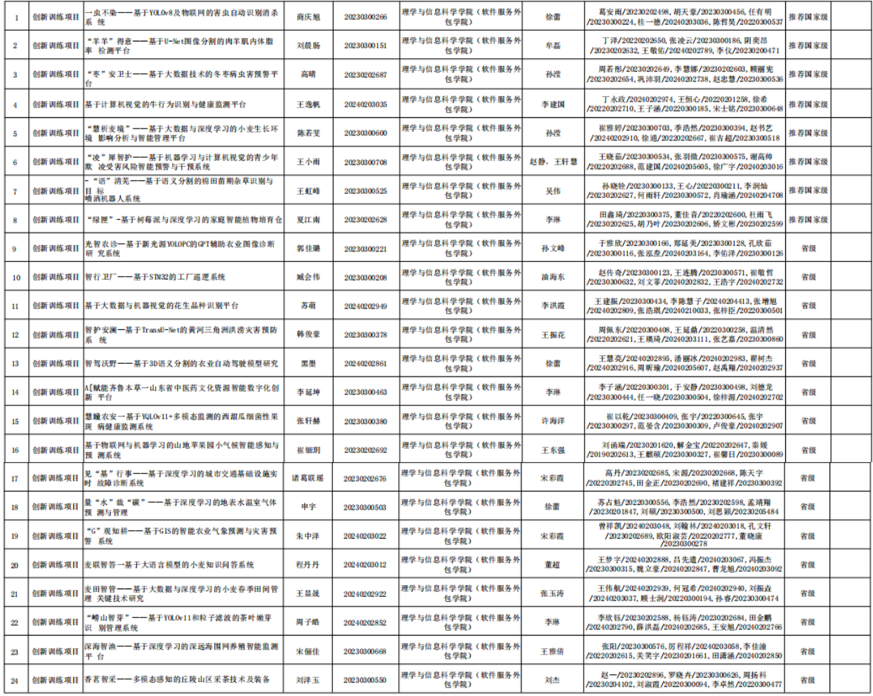 近日,山东省教育厅正式公布2025年山东省大学生创新训练计划项目立项名单。理学与信息科学学院表现优异,共获批省级及以上项目24项,其中8项推荐申报国家级项目,立项总数和国家级推荐数量均位居全校首位。