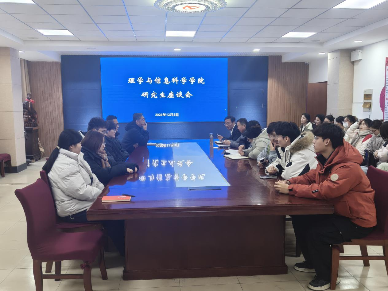2月3日,理学与信息科学学院在信息楼215会议室组织开展研究生座谈会。学院院长韩仲志,党委副书记岳斌,副院长李吉忠,研究生秘书、辅导员及全体研究生参加本次座谈会。