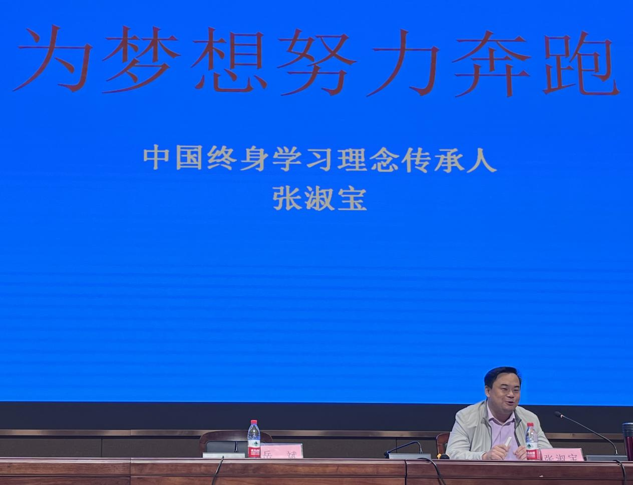 山东农民工张淑宝16岁初中毕业,因家庭贫困放弃升学,一直辗转于工地和工厂,但他没有放弃学习,十一年考出山东大学等3所高校毕业证2个学士学位等12本证书。报告会上,张淑宝以“为梦想努力奔跑”为主题,用幽默风趣的语言结合自身的学习经历进行了分享,他告诉同学们要自强不息,在逆境中拼搏,用持之以恒的决心和坚持不懈的努力成就自己。