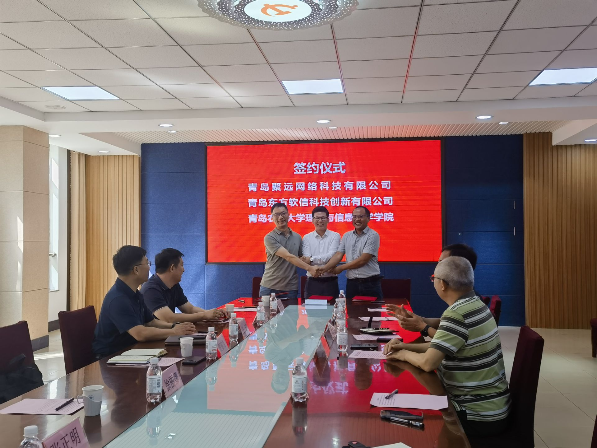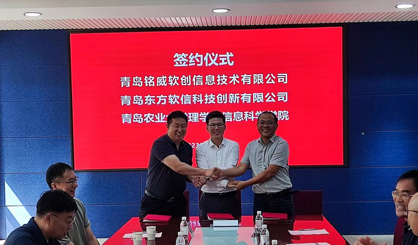 9月20日上午,在青岛农业大学校地协同发展研究院的支持下,青岛农业大学理学与信息科学学院与青岛东方软信科技创新有限公司、青岛聚远网络科技有限公司、青岛铭威软创信息技术有限公司等三家企业校地协同合作--实习实训基地签约仪式于信息楼会议室举行。理学与信息科学学院党委书记杨凯主持会议,学校社会合作处处长王珏、学院院长徐鹏民、副院长刘振斌、社会合作处张正明、学院计算机系主任赵磊、数据科学系副主任谢德燕、青岛东方软信科技创新有限公司总经理贺信信、青岛聚远网络科技有限公司总经理朱应生、青岛铭威软创信息技术有限公司总经理徐绍杰参加仪式。