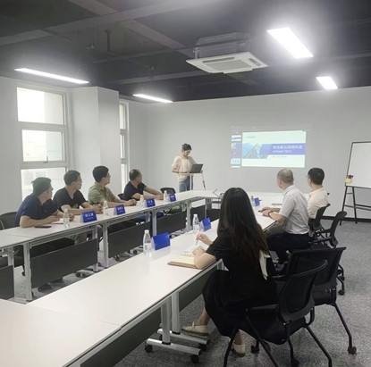 在青岛聚远网络科技有限公司,刘振斌一行参观了办公场地与实习基地。公司总经理朱应生详细介绍了公司的成长历程、荣誉资质、客户群体、以及对实习岗位需求和薪资待遇等方面的具体情况,并对计算机相关专业的优秀学生来公司实习表示欢迎。双方就学生实习安排、实验室建设、课程建设、师资培训等方面展开深入探讨。