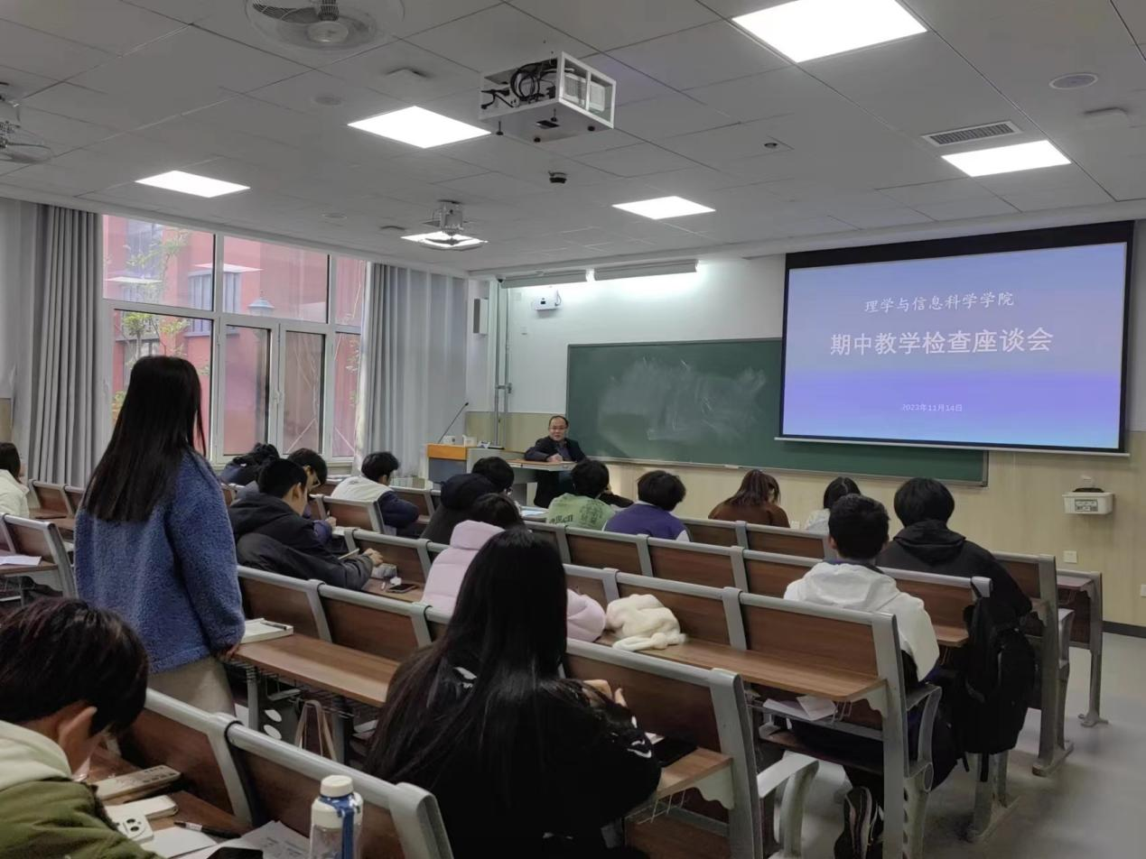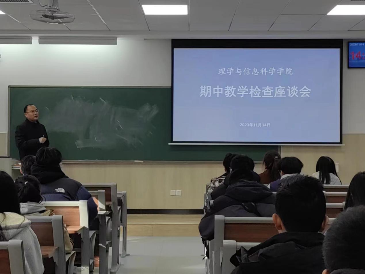 11月14日,理学与信息科学学院在平度校区博学楼B107召开期中教学检查座谈会。学院副院长刘振斌主持会议,辅导员孙源、刘航以及22级、23级学生代表参加会议。